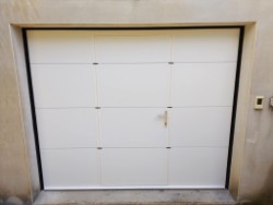 Pose d'une porte de garage sectionnelle en acier avec un portillon intégré