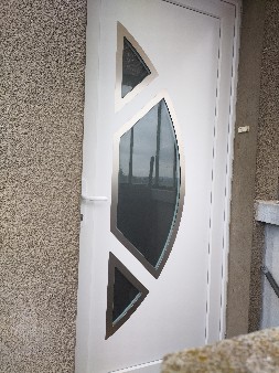 Pose de fenêtres en aluminium blanc avec petits bois collés.