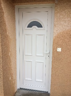 Pose de fenêtres en aluminium blanc avec petits bois collés.
