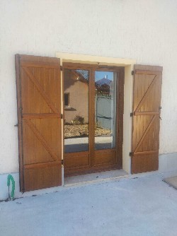 Pose de fenêtres en PVC et de volets battants en aluminium chêne doré